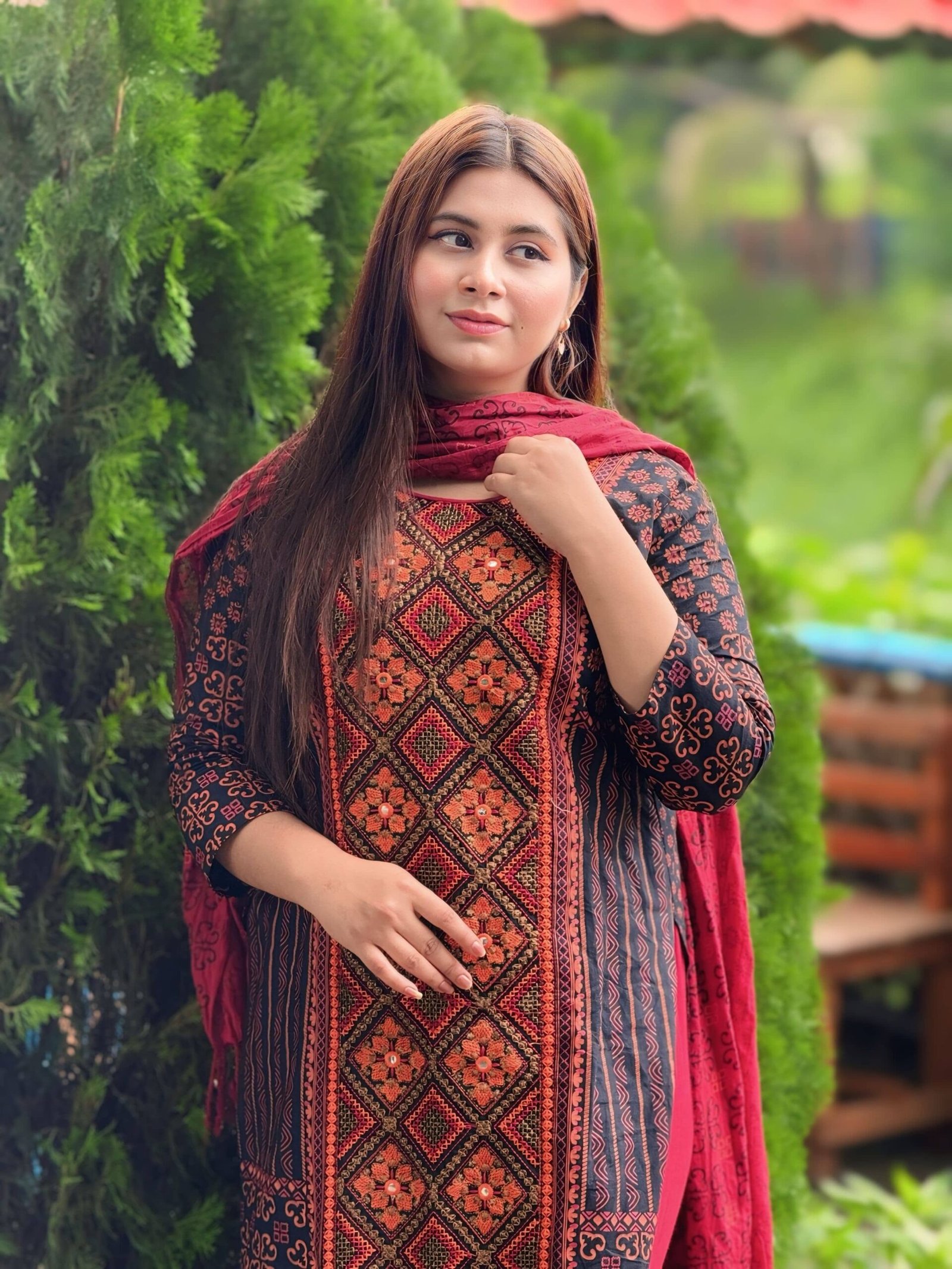 আপনার দৈনন্দিন স্টাইলকে তুলে ধরুন আমাদের সুন্দরভাবে ডিজাইন করা সালওয়ার কামিজ দিয়ে। এটি ঐতিহ্যবাহী স্টাইলের সঙ্গে আধুনিক কমফোর্টের সমন্বয়। নরম এবং শ্বাসপ্রশ্বাসযোগ্য কাপড়ে তৈরি, যা দৈনন্দিন, পার্টি বা উৎসবের জন্য উপযুক্ত।