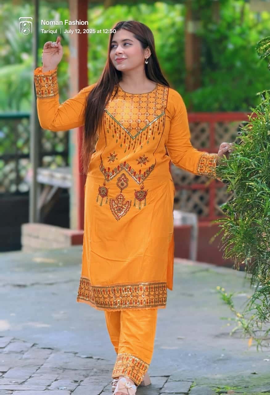 আপনার দৈনন্দিন স্টাইলকে তুলে ধরুন আমাদের সুন্দরভাবে ডিজাইন করা সালওয়ার কামিজ দিয়ে। এটি ঐতিহ্যবাহী স্টাইলের সঙ্গে আধুনিক কমফোর্টের সমন্বয়। নরম এবং শ্বাসপ্রশ্বাসযোগ্য কাপড়ে তৈরি, যা দৈনন্দিন, পার্টি বা উৎসবের জন্য উপযুক্ত।